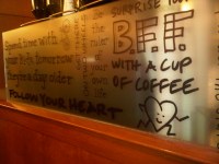 If you find yourself at the beginning of the main road, then skedaddle on over to this franchise that comes all the way over from California. It’s before Kababji & Dunkin and across from Chopsticks. The bar is nicely setup and they’ve got really nice gift-sets for those tea-fanatics in your life. They’ve got matching tins with different flavors all packaged together. One that stuck out was “Red Velvet Powder” for baking and such. Is it obvious that I have a weakness for red velvet? Anyway, they’ve also got a frequent-flyer-mile punch card – after 12 coffees, you get a free one. When you’re done ordering you get this pager that looks sort of like a taser; it buzzes when your order is ready to be picked up at the bar. Be careful with those things, they scare the heck out of you. Internet is regular IDM.