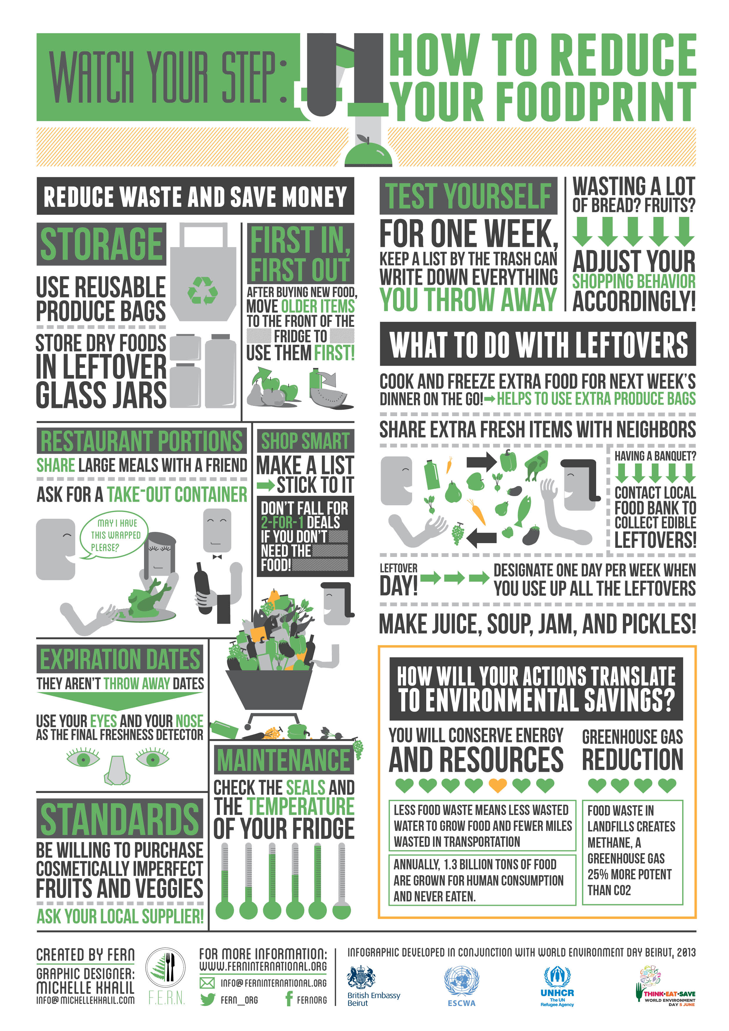 With UNHCR, UNESCWA, the Lebanese Food Bank, Cedar Environmental, and other organizations What’s going to happen? Talks about food waste, methods to reduce food waste at home, insight into global food production.