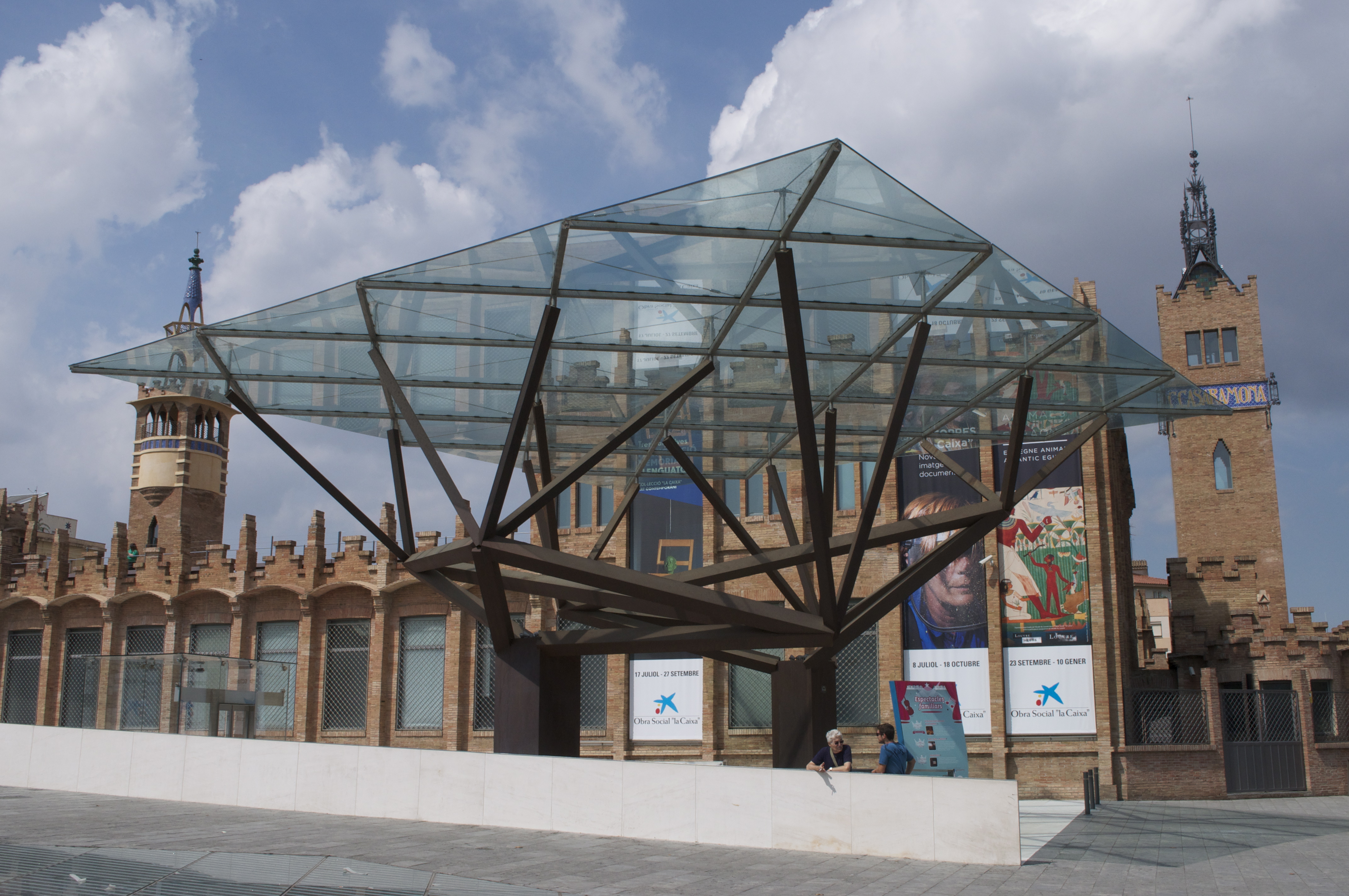 Anyway, Cadafalch incorporated multiple elements of Catalan craftsmanship: glass-making, brick-laying, metalwork. The overall goal was to strengthen Catalan institutions and identity while adding a medieval twist and Gaudi’s trencadis technique (using broken glass). And one of Cadafalch’s signatures is the use of dragons, an emblem of the Kingdom of Aragon. You can find one over the door at the base of the Casaramona tower. Take that, Dany.The factory closed in 1919 and was a police station for about half a century after that. As of today, it is an amalgam of Art Nouveau and industrial architecture because of the expansion on the existing structure. La Caixa Foundation, the charitable leg of La Caixa bank, stepped in to refurbish and create CaixaForum in 1997. Due to UNESCO Heritage Site rules, they were forced to expand the only way possible: by going underneath the building.
